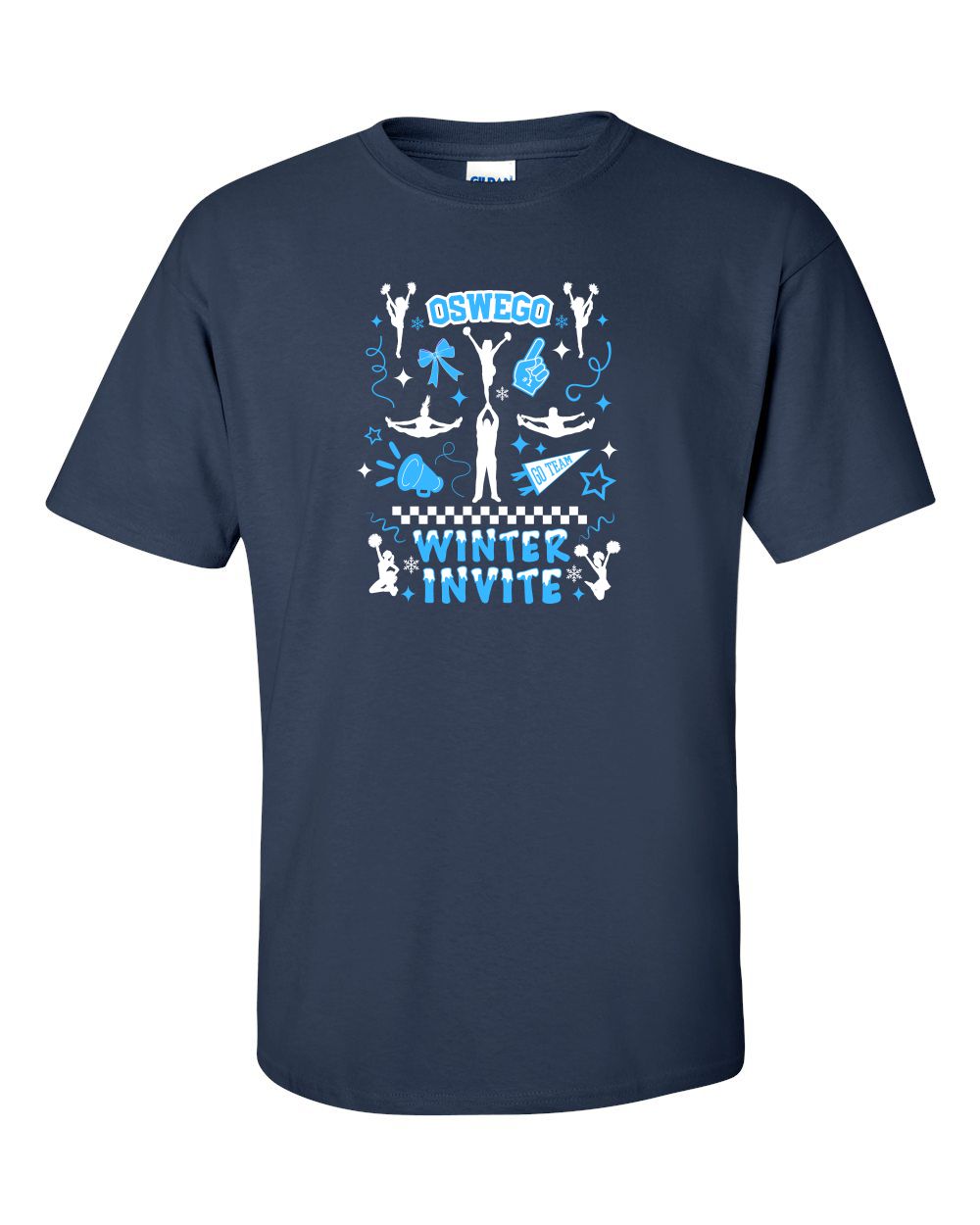 Make sure to pre-order your official 2025 Oswego Invite Cheer Competition T-shirt. We went with a trendy, cute checker board, dual gender, Cheer design in light blue and white imprint. Navy blue, 100% cotton, unisex, T-shirt. We also have hoodies, crewneck sweatshirts and joggers. We will have a limited amount of items on the day of the competition. If we run out of your preferred item on competition day, and you place an order, shipping charges will apply.